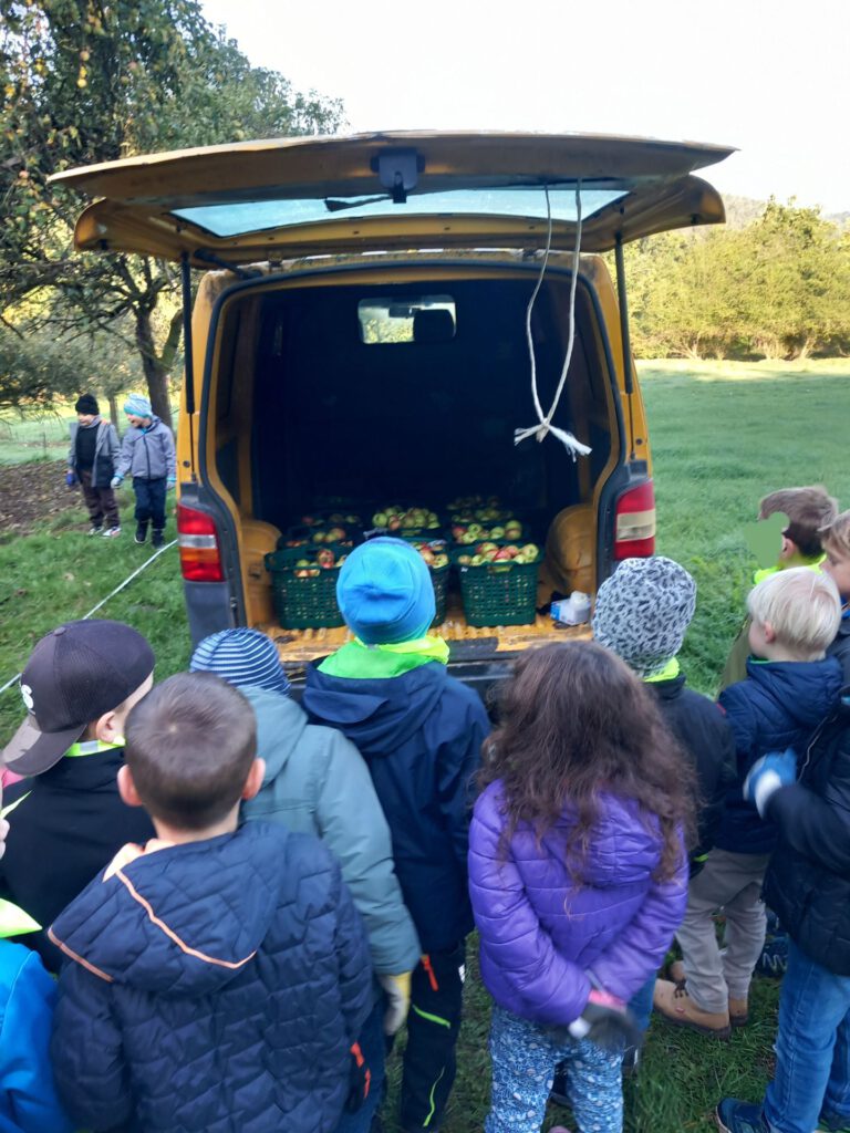 Ein ganz besonderes Erlebnis hatten unsere beiden ersten Klassen, denn sie sammelten Äpfel auf dem Klotzenhof und anschließend wurden diese Äpfel direkt zu Apfelsaft gemacht. Lecker!
