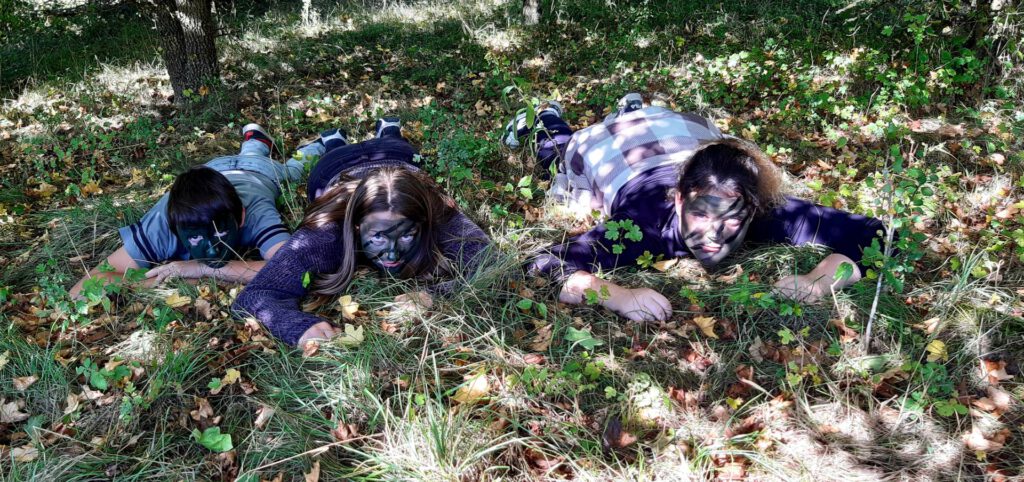 Nach dieser Pause ging es weiter in den Wald. Wir liefen auf schmalen Wegen, hörten die Vögel zwitschern und rochen die frische Waldluft. Unterwegs bekamen wir einen Forscherauftrag, denn jeder von uns hatte eine leere Eierschachtel dabei. Wir sollten verschiedene Dinge suchen, zum Beispiel etwas Glattes, etwas Rotes, etwas Spitzes oder einfach etwas, das wir selbst besonders schön finden.