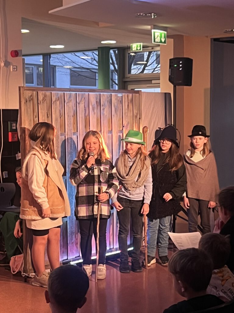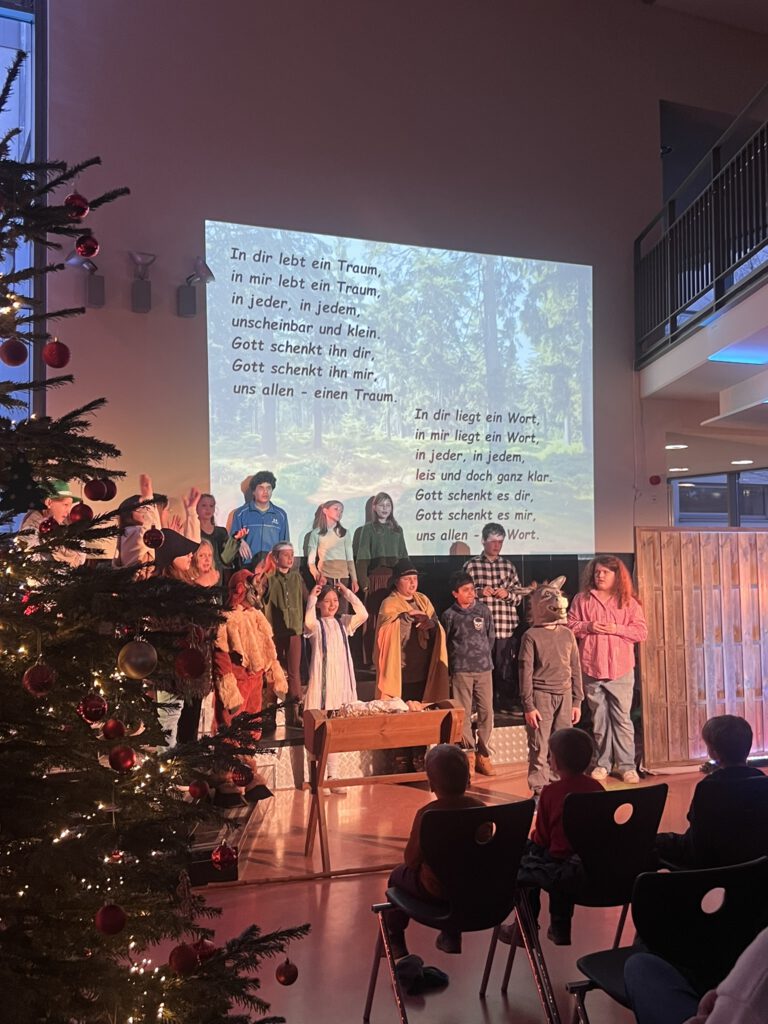 Am vorletzten Schultag präsentierten Schüler unserer 4. und 5. Jahrgangsstufe das Weihnachtsmusical vom kleinen Baum, der einen großen Traum hatte, nämlich eine Schatztruhe zu werden. Daraus wurde zwar nichts, aber es wurde die Futterkrippe aus ihm, in dem an Heilig Abend das Jesukind lag. Und das war dann noch viel schöner.