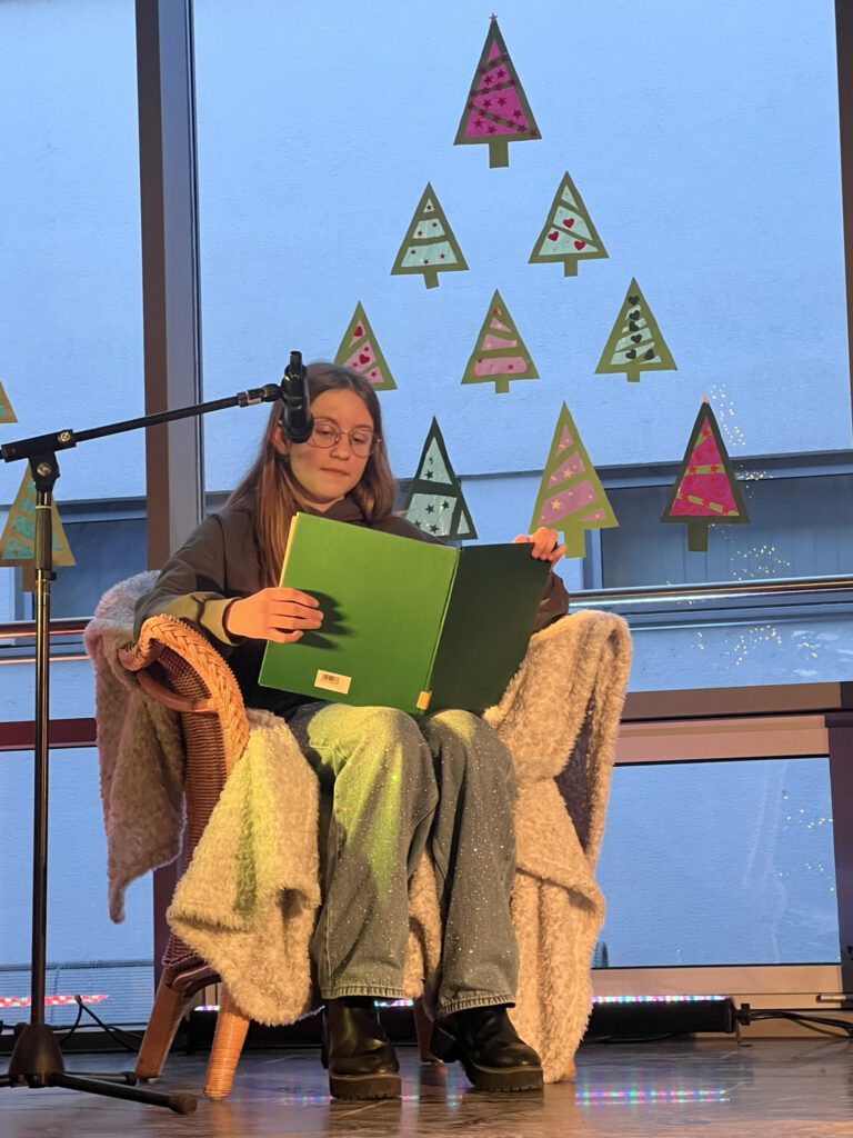 Bei unserem ersten Adventszauber war unsere Aula sehr gut gefüllt. Alle wollten die Beiträge sehen, die unsere Klassen vorbereitet hatten. Lieder und Geschichten, Rhythmicals und Besinnliches – die Klassenlehrkräfte hatten ein buntes Programm zusammengestellt. Im Anschluss versorgte der Elternbeirat im weihnachtlich geschmückten kleinen Pausenhof die Gäste mit Punsch und Glühwein. Für allen Einsatz und die großzügigen Kuchen- und Plätzchenspenden sagen wir herzlichen Dank.
